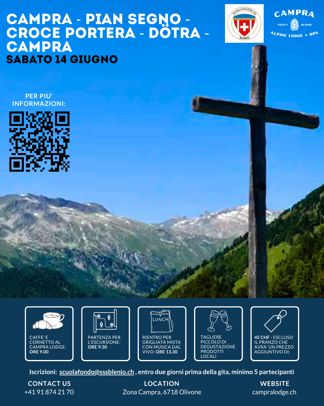 Iscrizioni: scuolafondo@sssblenio.ch , entro due giorni prima della gita, minimo 5 partecipanti